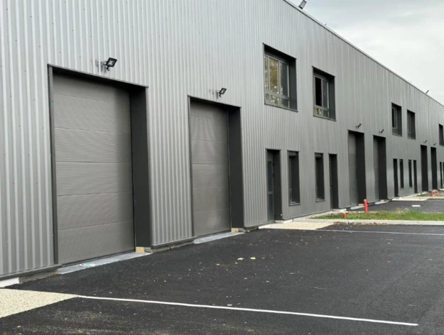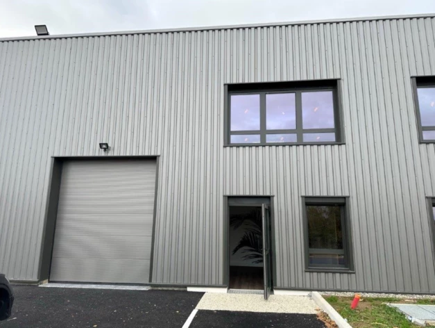 Le bâtiment est réparti en deux lots : le lot B1 accessible par double porte, et le lot B' disposant d'une terrasse de 5 m² en mezzanine. Aucun des deux ne possède de porte sectionnelle, mais les accès sont pratiques et adaptés à une activité légère ou tertiaire. Le parc n'est pas clos, ce qui facilite les flux et les livraisons. Les bureaux sont lumineux et bien agencés, et la mezzanine offre un espace complémentaire pour du stockage ou un bureau secondaire.