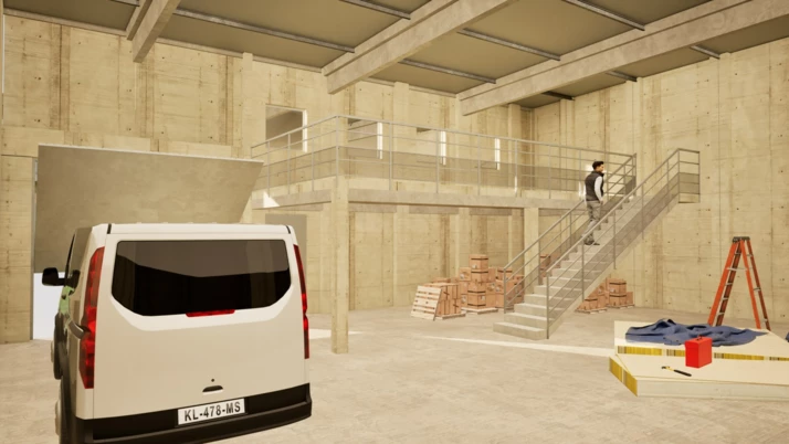 Une mezzanine de 36 m² complète cet espace, offrant une solution supplémentaire pour le stockage ou les bureaux.