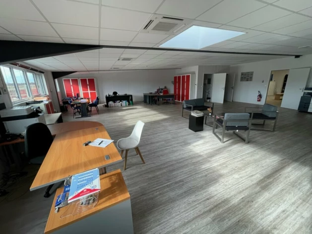 PRESTATIONS : Site clos et sécurisé (vidéosurveillance)Bardage double peau (RT2012)Toiture bac acier isoléDalle béton quartz 3t/m²Hauteur libre 7 m environTrappes de désenfumageCourant triphaséPorte sectionnelle motorisée de 4 x 4mPorte de serviceVidéophoneAlarmePortail automatique à l'entréeFibre7 StationnementsSURFACES :Mezzanine entièrement aménagée de 210 m² (sol, faux plafond, climatisation, éclairage) avec accès par escalier ou monte charge (1 400kg) composée d'un open space (150 m²), d'un espace salle de pause/cuisine (33 m²) et d'une salle de réunion (40 m²). WC/sanitaires au RDC et en mezzanineStockage sous mezzanine de 210 m² avec 2.65m de hauteurEntrepôt de 139 m² (hauteur 7m)