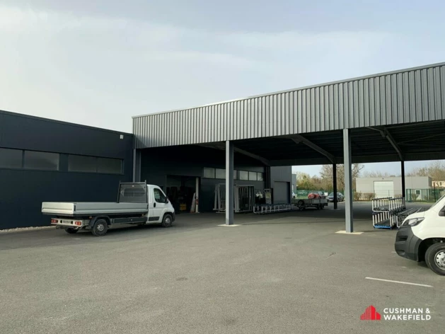local activité 1569 m²:HSP utile 3.4 m à 4.5 m3 portes sectionnellestrappes de désenfumagesol bétonLes deux bâtiment sont reliés par un espace de stockage couvert d'une surface de 440 m²