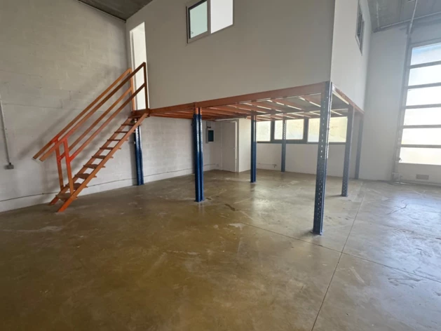 Une mezzanine de 20 m² aménagée en bureaux offre un espace confortable pour la gestion administrative. Le local dispose de sanitaires privatifs ainsi que de 2 places de parking dédiées. La structure en charpente métallique et la couverture bac acier isolée RT2012 garantissent durabilité et performance énergétique.