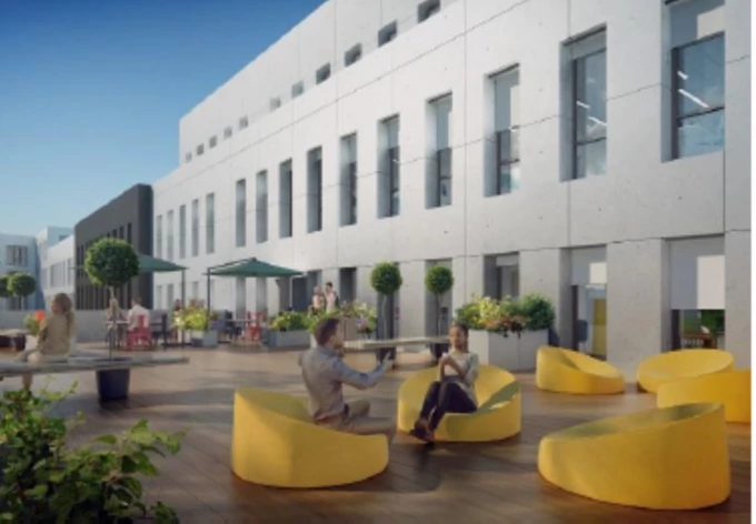 Ses espaces extérieurs, incluant un jardin intérieur et de nombreuses terrasses, favorisent un cadre de travail agréable et inspirant.