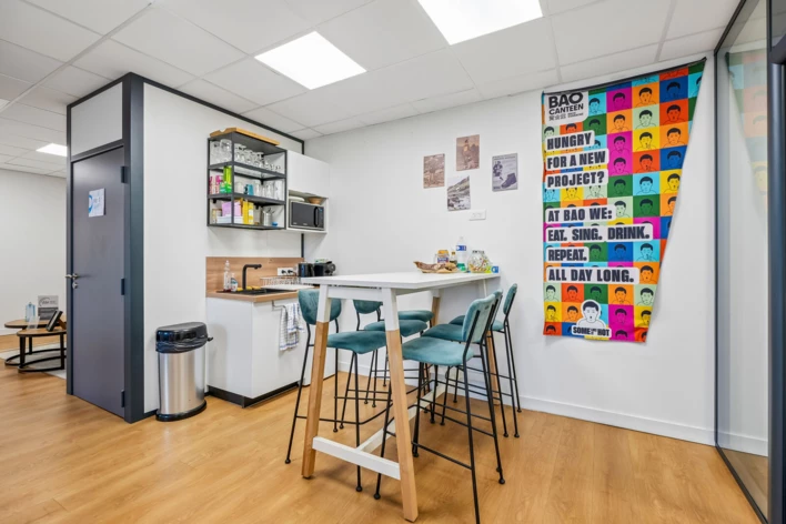 Les bureaux sont en parfait état, sont entièrement aménagés et prêts à l'emploi, offrant une organisation fonctionnelle adaptée à de nombreuses activités tertiaires. Le plateau comprend plusieurs bureaux fermés, une salle de réunion, ainsi que des espaces collaboratifs optimisés. Une phone box est également intégrée pour garantir la confidentialité des échanges, complétée par un espace cuisine et une douche, apportant un véritable confort au quotidien.