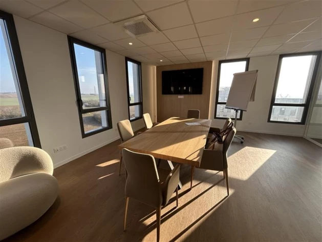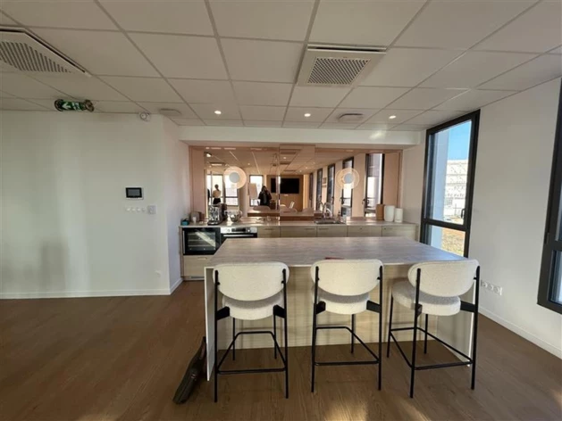 Au 4ème étage d'un immeuble neuf, ces locaux (avec accessibilité PMR) sont constitués de 2 bureaux, 1 open-space, une cuisine équipée et des sanitaires PMR.