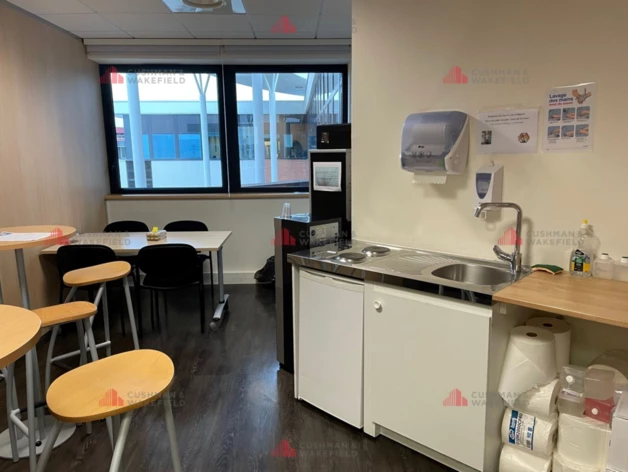 Au R+2 d'un immeuble tertiaire récent, ces locaux sont constitués d'1 open-space, 3 bureaux, 1 salle de réunion, 1 kitchenette et 1 local informatique.
