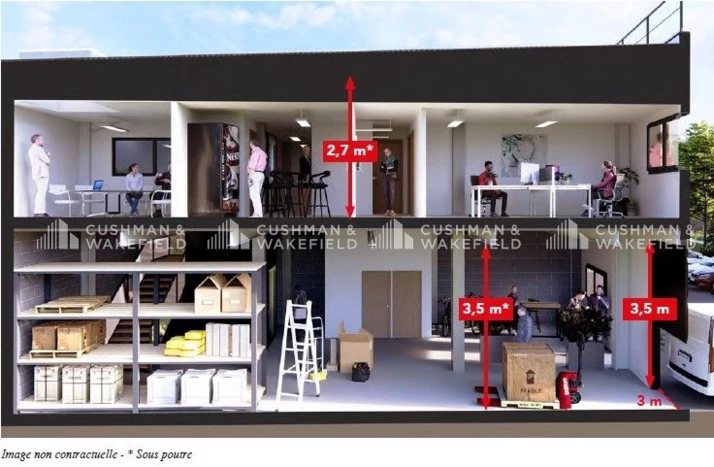 - Accès à chaque lot par 1 porte sectionnelle isolée 3 x 3.5 m et 1 porte piétons en aluminium