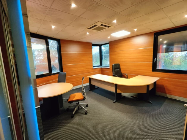 L'espace est entièrement aménagé et prêt à l'emploi, avec des cloisons mobiles et une climatisation pour garantir le confort de vos équipes. L'ensemble bénéficie d'un accès facile depuis la N118 et se trouve à proximité des commerces et services locaux, notamment auprès du traiteur GAULUPEAU qui attribue une offre de restauration de qualité au sein du parc.