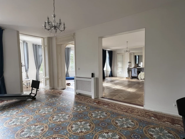 Situé en lisière de forêt, au coeur d'un parc arboré de 2,6 hectares, ce bâtiment en briques et pierre développe 769 m² non divisibles. Les trois premiers niveaux ont été rénovés entre 2010 et 2012 et proposent des espaces de travail lumineux et de beaux volumes, tandis que le troisième étage et les combles restent à réhabiliter, offrant un potentiel supplémentaire.
