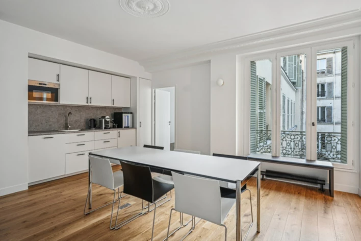MADELEINE / AUBER - A proximité immédiate de la place de la Madeleine et de ses hubs de transports environnants, nous vous proposons un plateau de bureaux traversant en étage élevé d'un bel immeuble début 20e siècle, entièrement rénové avec des matériaux de grande qualité par architecte.