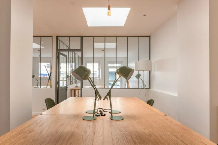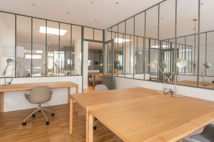 Cet espace, niché dans un immeuble mixte de standing, a été entièrement rénové et offre des prestations de haute qualité : double entrée, cloisons vitrées toute hauteur, espaces ouverts, bureaux cloisonnés et cuisine aménagée.
