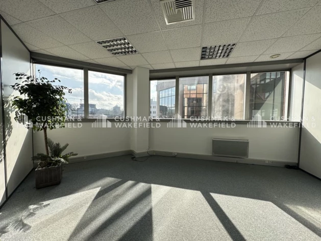 - Locaux cloisonnés en cloisons démontables : 3 bureaux - 1 espace paysagé - 1 local de stockage - 1 local archives avec étagères