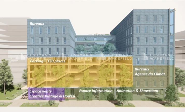 - 4574 m² de bureaux disponibles, construits en superstructure d'un parking silo. Surfaces réparties au 4ème-5ème-6ème et 7ème étage, Gaia est un bâtiment écologique et qualitatif : Labels BBCA et Bâtiment Biosourcé, Certifications HQE, RE2020 seuil RE2028