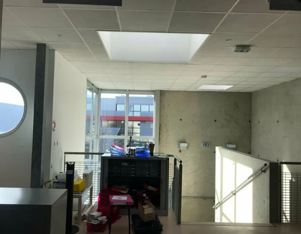 Les locaux sont actuellement cloisonnés avec des cloisons amovibles. Revêtement de sol en PVC et moquettes.