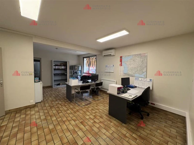 Sur un terrain d'une contenance de 1 468 m², dans un bâtiment indépendant, ces locaux sont composés d'un entrepôt de 176 m² environ (HSF : 3,60 m), de bureaux de 164 m² environ, de vestiaires et d'une kitchenette.