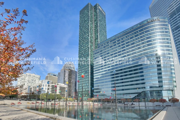 Les espaces de coworking à louer se situent au septième étage, offrant une agréable vue sur les entreprises, hôtels et infrastructures de La Défense.