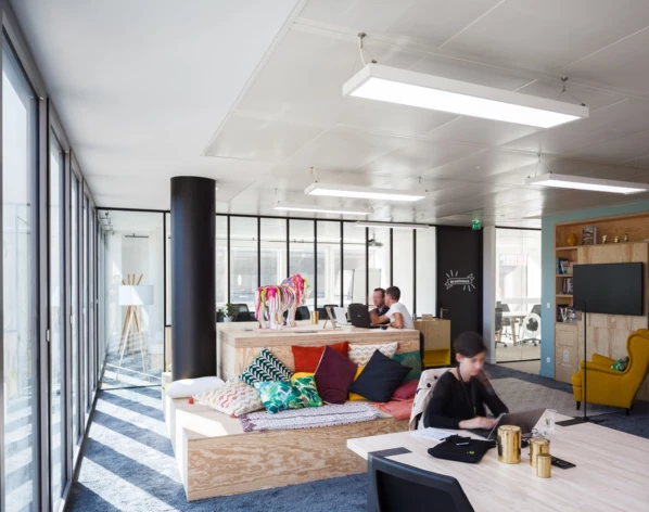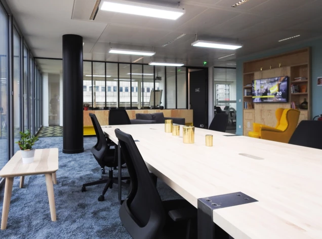 Les espaces de travail sont complétés par des salles de réunion et des espaces de convivialité dans une ambiance super trendy pour le plus grand confort de vos collaborateurs.