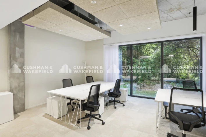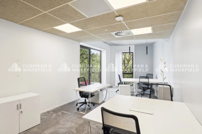 Découvrez des espaces de travail moderne et lumineux donnant sur un cadre verdoyant.
