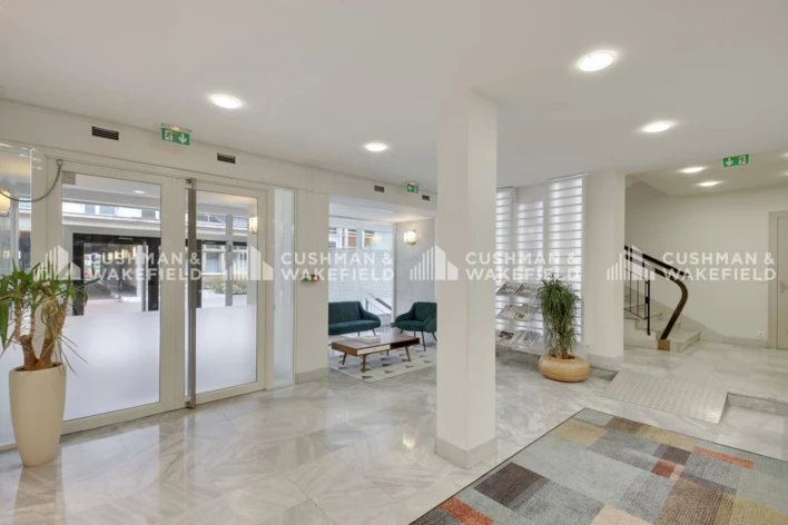 Réception lumineuse, espace de travail flexibles et modernes, optez pour une solution plug'n'work donnant sur un espace verdoyant attrayant.