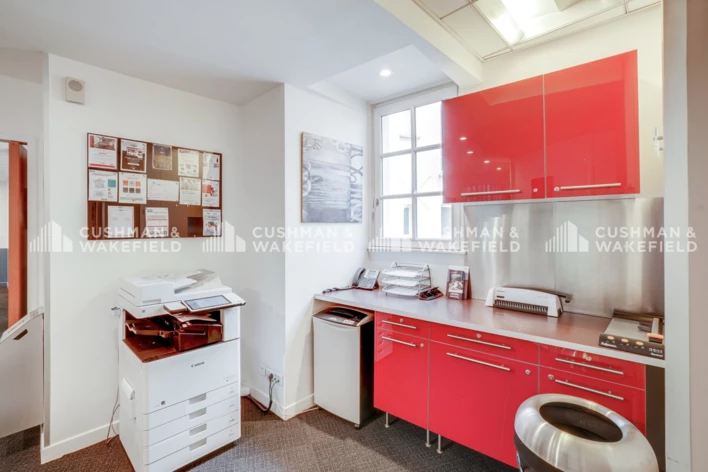 C'est l'une des plus longues rues commerciales de Paris, mais les doubles-vitrages du centre assurent la tranquillité des espaces de travail.
