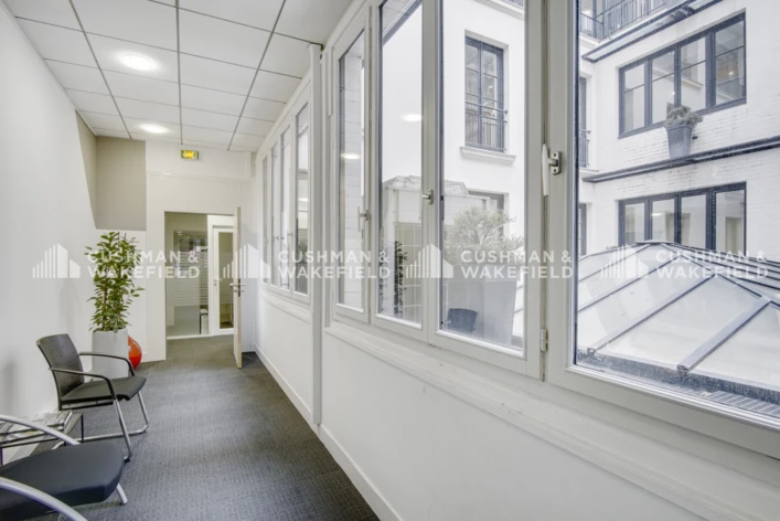 Au sein d'un immeuble typiquement parisien tournant autour d'une verrière, découvrez un cadre élégant et spacieux convenant à des entreprises de toutes tailles en quête d'un lieu calme et inspirant.