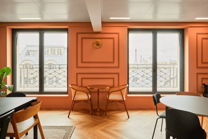 Découvrez les espaces trendy et chaleureux du 128 rue du Faubourg Saint-Honoré, alliant des espaces de bureaux lumineux, espaces partagés de grande qualité et variété, et une magnifique terrasse vous offrant l'une des plus belles vues sur les toits de Paris.