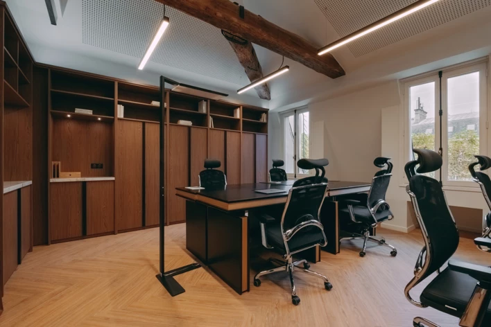 Combinaison harmonieuse de l'Haussmannien et du contemporain, intégrez des espaces premium, empreints des codes de l'hôtellerie de luxe, où les espaces se parent de tissus et de lumières comme une seconde peau intérieure et vous invitent à profiter d'une ambiance feutrée et captivante.