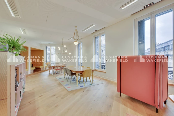 A proximité immédiate de l'Opéra Garnier, le bâtiment de style Napoléon III offre un cadre élégant et spacieux à des entreprises de toutes tailles en quête d'un lieu calme et inspirant.