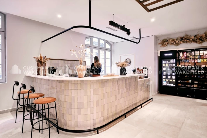 En plus de surfaces entièrement équipées et gérées par notre partenaire, accédez à de nombreux espaces de convivialité dans un cadre de travail ultra design.