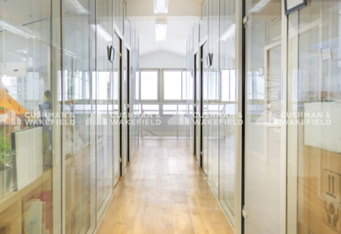 Les espaces sont lumineux grâce à l'agencement du plateau qui offre de nombreuses sources de lumière, ainsi qu'au traitement architectural avec des parois vitrées et des murs blancs.