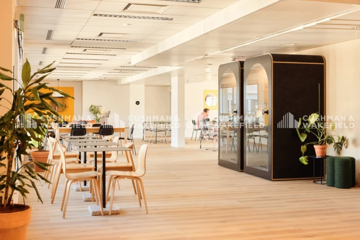 Baigné de lumière, cet espace combine confort et modernité avec une cour intérieure ensoleillée idéale pour les pauses, un café-comptoir convivial où retrouver collègues et clients, ainsi que de nombreuses salles de réunion adaptées à tous les besoins.