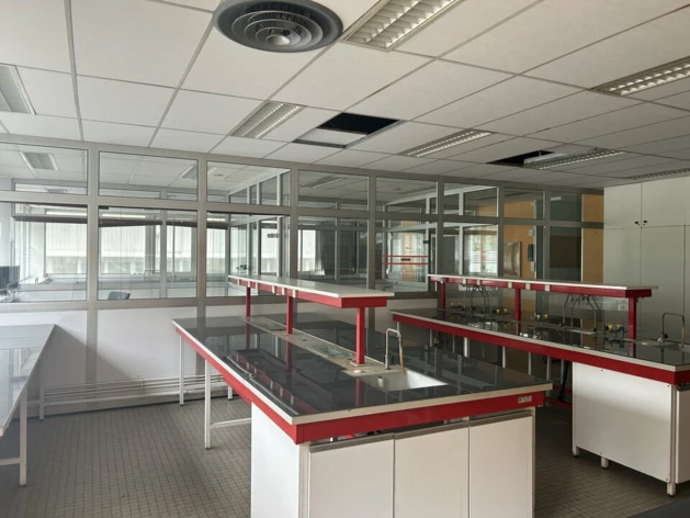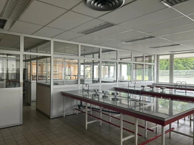 Ce local d'une superficie d'environ 350m² est composé d'une partie laboratoire avec des bureaux et d'une partie stockage d'environ 90m². Un garage d'environ 50m² complète le local.