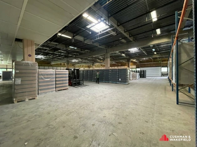 Un premier espace de 1 000 m² avec faux plafond, bureaux d'expédition et sanitaires.