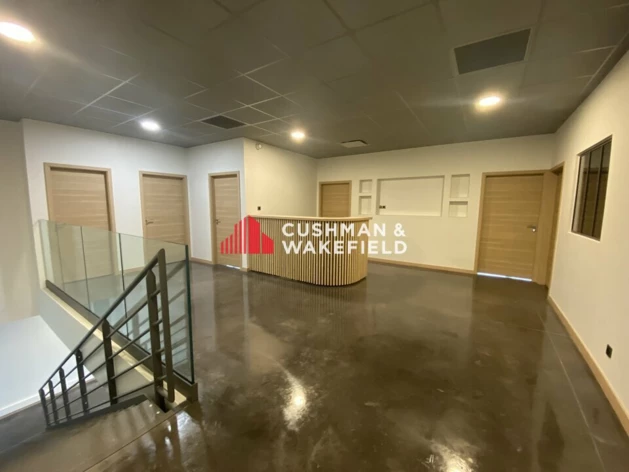- en étage : 150 m² de surface bureaux aménagée comprenant 3 bureaux cloisonnés, un open-space, une cuisine équipée, un sanitaire et un local technique.