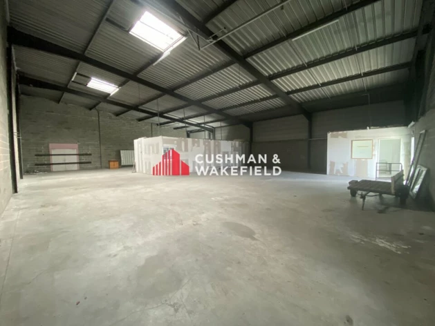 Cette surface de plain-pied comprend 2 bureaux, une cuisine aménagée , un sanitaire, 2 portes sectionnelles motorisées de 4x5 m et 2 accès piétons.