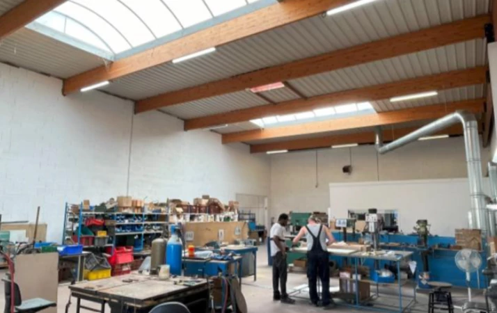 L'espace est conçu pour répondre aux besoins des entreprises industrielles, artisanales ou logistiques, avec un dallage béton supportant jusqu'à 3T/m², deux portes de plain-pied de grandes dimensions (3 x 4,50 m), une structure en béton et lamellé-collé, ainsi qu'une toiture en bac acier avec étanchéité bicouche.