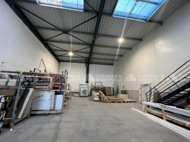 L'entrepôt, très lumineux, dispose d'une hauteur d'environ 6,50 m² et d'éclairage LED.