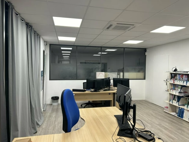 Le bien est en très bon état d'entretien, il bénéficie des caractéristiques suivantes :283m² d'entrepôt/atelier2 portes sectionnelles motorisées 3 x 3.50m2 portes piétonDalle béton quartzHauteur libre de 6.3 à 7mLa partie atelier est climatisé273 m² de bureau aménagé avec climatisation réversibleEspace cuisineUne grande salle de réunionPlusieurs bureaux en open spaceCe local bénéficie d'un espace extérieur enrobé de 346m². Possibilité d'agrandir l'espace entrepôt sur la partie bureau.