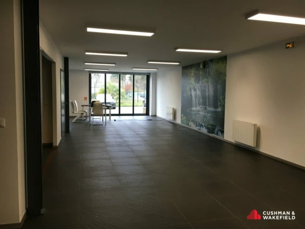 un local d'activité d'état neuf, comprenant :un RDC de 236m² avec un grand show room (portes vitrées sur l'avant) et une zone de petit stockage à l'arrière de 60m² (HSP 7m) sans accès arrière, un sanitaire PMRun étage accessible par larges escaliers comprenant un plateau en open space de bureauBelles prestations, "clé en main".