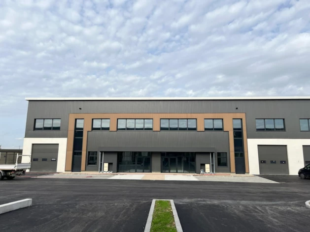 Le bâtiment, construit avec des matériaux de qualité et certifié HQE Construction, offre des espaces de travail optimisés et fonctionnels. Il comprend des bureaux et des espaces d'activités répartis sur plusieurs lots, avec des surfaces allant de 455 m² à 1 965 m². La zone industrielle environnante est réputée pour son dynamisme et son environnement propice au développement des activités industrielles et commerciales. Le site est équipé de luminaires industriels LED et de chauffage par aérothermes gaz à détente directe.
