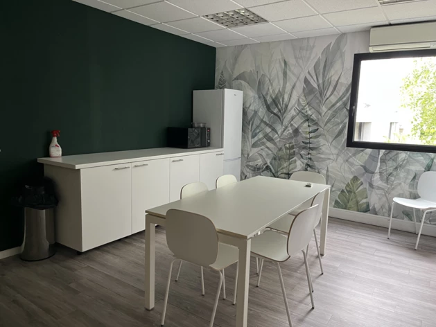 Le bâtiment se compose de 722 m² de surface d'activité avec une hauteur libre de 6,8 m, une porte sectionnelle (4,5 m x 4 m), une cour de déchargement, un quai niveleur, et une dalle béton anti-poussière. Les 280 m² de bureaux sont entièrement aménagés, climatisés, cloisonnés et câblés, avec kitchenette et douche. Le chauffage est assuré par aérothermes gaz.