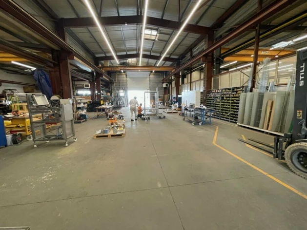 Bâtiment industriel à louer d'une surface totale de 2 816m² dont 446 m² de locaux sociaux/bureaux4 portes sectionnellesAccès bureaux par escalier extérieurAccès PLSite non clôturéParkings VLBureaux climatisés et cablésCabine de peinture de 70 m² avec accès indépendantBardage double peau sur ossature métalliqueToiture avec isolation thermiqueSkydomes dans la partie entrepôt3 ponts roulantsFoncier de 4 298 m²