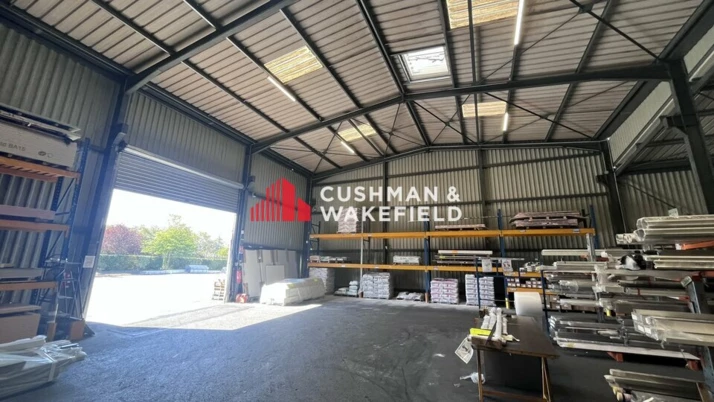 Le bâtiment réalisé sur un terrain d'environ 6000 m² de voirie PL Comprend une partie de bureaux et show-room rafraichis et chauffés,
