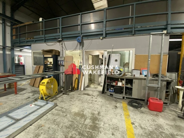 - option 1 : une surface de stockage d'environ 500 m² + 25 m² comprenant 2 sanitaires, un vestiaire, un espace cuisine et un bureau + 100 m² de mezzanine + 6 parkings