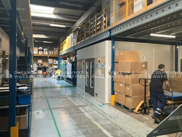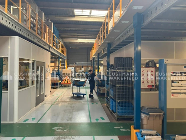 Ce bien se compose d'un entrepôt d'environ 1 150 m², bénéficiant d'une hauteur sous poutre de 7 mètres, offrant ainsi une belle capacité de stockage ou d'aménagement pour une activité industrielle. Il comprend également 484 m² de bureaux rénovés, répartis sur deux niveaux, permettant d'accueillir confortablement les fonctions administratives.