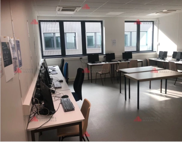 Les locaux sont situés au 1er étage, et dispose d'un accueil, d'un bureau technique, d'une salle de cours (grande capacité d'accueil), un grand espace multi-occupants, ainsi que de sanitaires privatives.
