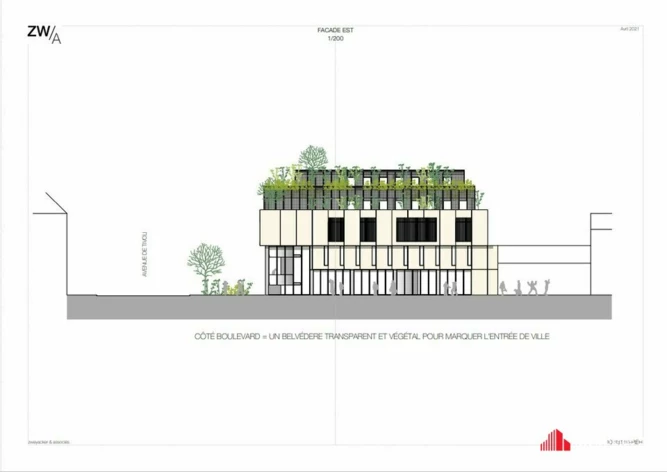 Un immeuble indépendant à construire d'une surface d'environ 2 667 m² en R+5, accompagné de 339 m² de jardins extérieurs,