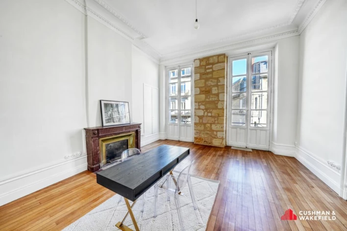 À louer Plateau de bureaux de prestige à Bordeaux Jardin Public / Place TournyÀ 100 m de la place Tourny et du Jardin Public, et à 50 m du tramway Fondaudège-Museum (ligne D), découvrez un espace de bureaux unique au 1er étage d'un immeuble en pierre. Parking public du Champ de Mars (50 places) à proximité immédiate.Caractéristiques :4 m de hauteur sous plafond, parquet ancien, boiseries, cheminée, mouluresTraversant : 3 pièces côté rue, 3 pièces côté jardin, grande entrée centraleCuisine sous verrière, WC hommes, WC femmes, douche indépendanteGrand balcon avec vue dégagée sur le Jardin Public et la place TournyÉquipements :Entièrement réhabilité il y a 1 an et demiClimatisation réversible à faible consommationRéseau RJ45 câblé avec baie de brassageUn cadre de travail d'exception alliant charme de l'ancien et confort moderne.