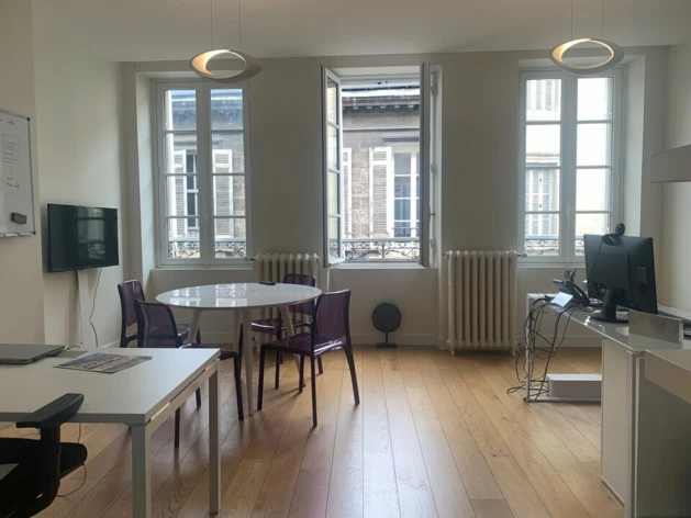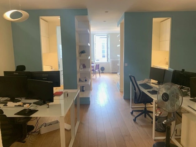 Bureaux à louer Centre-ville de Bordeaux, Pey BerlandÀ deux pas de la Place Pey Berland, découvrez ce plateau de bureaux d'environ 75 m², entièrement rénové par un architecte avec des prestations soignées.Il se compose de :Un grand open space lumineuxUn bureau ferméUn coin cuisine aménagéSitué en plein cur du centre-ville, vous bénéficierez d'un emplacement stratégique avec toutes les commodités et commerces en pied d'immeuble, ainsi qu'une excellente desserte par les transports (tram A - Ste Catherine en pied d'immeuble)Parfait pour une entreprise souhaitant allier modernité, confort et accessibilité dans un quartier dynamique.