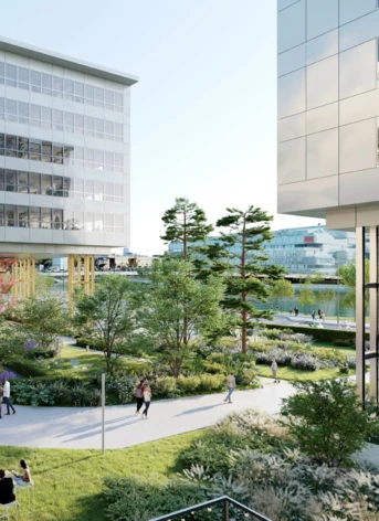 CAMPUS, un projet d'envergure développant 30 000 m² de bureaux modernes et modulables, au coeur d'un environnement unique alliant qualité de vie et performance. Il propose 5 000 m² de parc paysager aménagé, 2 000 m² de terrasses et rooftops accessibles, ainsi qu'une offre de services exceptionnelle : restaurant avec service à table, authentique diner américain, cafétéria, auditorium, terrain de padel, terrain de pétanque et parties communes de grande qualité.