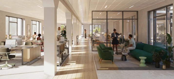 -un espace de co working d'une surface de 5000 m² sur le RDC et le 1er étage.